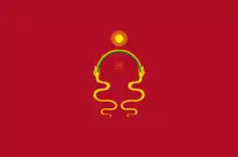 ... el guión o estandarte real era una banderilla cuadrada y pequeña, de diez o doce palmos de ruedo, hecha de lienzo de algodón o de lana, iba puesta en el remate de una asta larga, tendida y tiesa, sin que ondease al aire, y en ella pintaba cada rey sus armas y divisas, porque cada uno las escogía diferentes, aunque las generales de los Incas eran el arco celeste y dos culebras tendidas a lo largo paralelas con la borda que le servía de corona, a las cuales solía añadir por divisa y blasón cada rey las que le parecía, como un león, un águila y otras figuras.[4]Bernabé Cobo, Historia del Nuevo Mundo (1653)