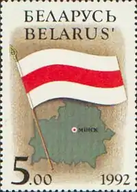 A finales de la década de 1980, la bandera fue usada de nuevo como un símbolo del nacionalismo romántico y de los cambios democráticos en el país. Tras una propuesta del Frente Popular Bielorruso, la bandera se convirtió en símbolo estatal de la Bielorrusia independiente desde 1991.