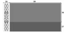 Un diseño decorativo, diseñado en 1917 por Matrena Markévich, se muestra en la parte que cuelga del asta de la bandera (y previamente en la bandera de 1951). El patrón es de un tipo tradicional comúnmente utilizado en Bielorrusia que es derivado de plantas y flores locales. Estos patrones se emplean en ocasiones en prendas de ropa, pero se pueden ver principalmente en el tradicional rushnik, un paño tejido tradicional que se usa en servicios religiosos, funerales y otras funciones sociales. Un ejemplo de su uso podría ser un anfitrión ofreciendo a sus invitados pan y sal servidos sobre un rushnik.[5] En la bandera actual, la decoración simboliza el pasado cultural y la unidad actual del país.