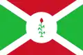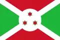 La bandera de Burundi está compuesta por una cruz de San Andrés de color blanco dividiendo la bandera en cuatro áreas, siendo la superior y la inferior de color rojo, y las laterales de color verde. En el centro de la bandera aparece un círculo blanco que contiene tres estrellas rojas perfiladas en verde, que simbolizan a los tres grupos étnicos mayoritarios de Burundi: los hutus, los twas y los tutsis. También simbolizan los tres elementos del lema nacional: unidad, trabajo y progreso.