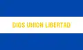 Y la Lema "Dios Unión Libertad" están representadas en tres palabras de cada una pintadas de color ámbar de la bandera civil:[7]