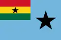 La bandera fue diseñada por Theodosia Okoh para reemplazar la Bandera del Reino Unido después de su independencia en 1957. En ella figuran los colores panafricanos que también conforman las banderas de otros países como Etiopía (rojo, amarillo y verde), en bandas iguales horizontales con una estrella de cinco puntas en el centro de la banda amarilla. Ghana fue el segundo país africano (el primero fue Etiopía) en adoptar estos colores.