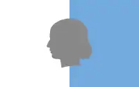 Diseño | Bandera celeste y blanca con la silueta de Eva Duarte de Perón. | |