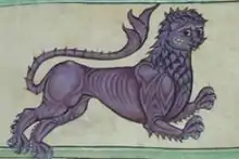 La cola del león adoptó, desde sus inicios, la forma de una «S», que se acentuó a medida que avanzaba la Edad Media. Esta disposición la hizo un rasgo característico de la heráldica hispana, frente al resto de Europa, donde predominaron las colas con el extremo vuelto hacia el dorso del animal.[7]