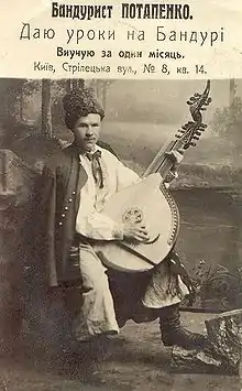 Bandura (en ucraniano: бандура) es un instrumento ucraniano de cuerda pulsada. Combina los elementos de la caja de la cítara y el laúd, así como el predecesor del laúd de estilo barroco: la kobza.