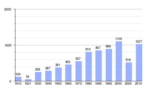 Gráfica de evolución demográfica de Bangandhó entre 1910 y 2010 |