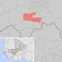 Se encuentra ubicada en el centro del país y al suroeste de la región de Tombuctú, en la zona de la sabana inundada del delta interior del Níger-Bani.