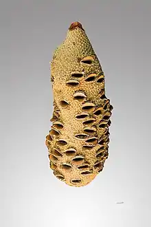 Banksia: nombre genérico que fue otorgado en honor del botánico inglés Sir Joseph Banks, quién colectó el primer espécimen de Banksia en 1770, durante la primera expedición de James Cook.