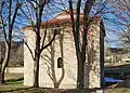 El techo actual data de principios del siglo XIX: consiste en un techo de tejas cuadrangulares en torno a la cúpula octogonal, de dimensiones mucho más pequeñas que en el pasado. El techo está decorado con un campanario de sillar.