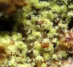 ![]() Barahonaíta-(Fe). Calicata en la concesión La Reconquistada, Pastrana, Mazarrón, Murcia, (España). Col.y foto Christian Rewitzer | ||