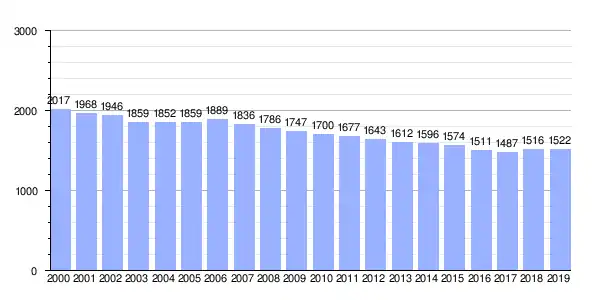 Gráfica de evolución demográfica de Barallobre entre 2000 y 2019 |