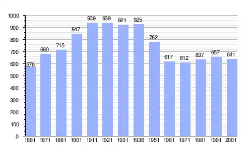 Gráfica de evolución demográfica de Barbaresco entre 1861 y 2001 |