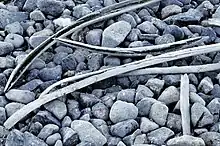 Restos de barbas de ballena en una playa de la isla Cuverville, costa de Danco, Antártida.