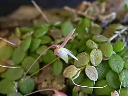 Es una orquídea de pequeño tamaño que prefiere un clima cálido al fresco, con un hábito epífita. Tiene ascendentes ramicaules envueltos por una vaina delgada, tubular y con una sola hoja, apical, próstada, densamente coriácea, suborbicular a elíptica, obtusa a redondeada, de base peciolada casi ausente. Florece a finales del invierno y principios de la primavera en una inflorescencia delgada, erguida, de 1,5-0,8 cm de largo, solo con una bráctea diminuta por debajo de la media y una bráctea floral oblicua.[1]