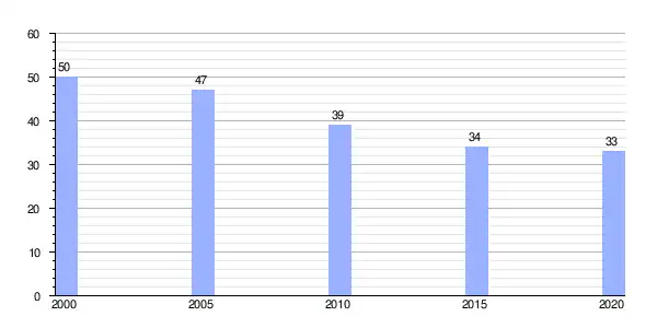 Gráfica de evolución demográfica de Bardaos entre 2000 y 2020 |