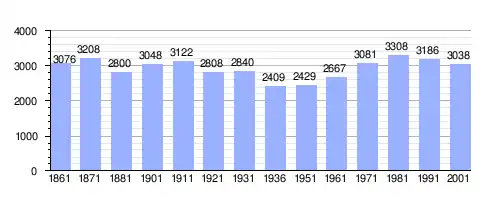 Gráfica de evolución demográfica de Bardonecchia entre 1861 y 2001 |