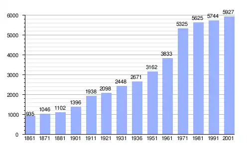Gráfica de evolución demográfica de Barlassina entre 1861 y 2001 |