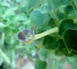 Hojas ampliamente ovadas de 0.6–2.3 × 0.8–2.8 centímetros, ápice redondeado; superficies con tricomas (pelos) densos y pálidos.[1] Pecíolo de 2,5–14 mm de largo.[1] Las semillas de Barleria affinis pueden crecer 3–4 mm de largo y ancho.[1]