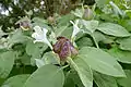 Es un arbusto que puede llegar a crecer 90–300 centímetros de altura, con semillas de 6,5–8 × 6–7,5 mm.[1] Los tallos más jóvenes poseen tricomas (pelos) densos, comúnmente de color beige amarillento en los entrenudos.[1] Sus hojas pueden ser ovadas y anchas de 5–14 × 3–9 centímetros, con ápice poco atenuado.[1] Pecíolo de 8–23 mm de largo.[1]
