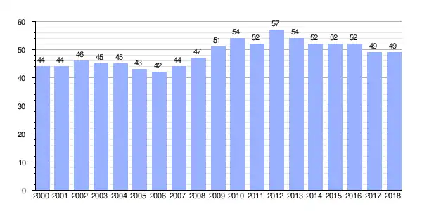 Gráfica de evolución demográfica de Barouta entre 2000 y 2018 |