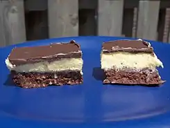 La barra de Nanaimo es un postre de origen canadiense popular en toda Norteamérica. Es un cuadrado de chocolate que no se hornea, y recibe su nombre de la ciudad de Nanaimo, en la costa oeste (Columbia Británica). Consiste en una capa de barquillo desmigajado, cubierto con una capa de glaseado ligero de mantequilla con sabor a vainilla o natillas, que se cubre a su vez con chocolate fundido.[1] Existen muchas variantes que cambian el tipo de migas de la base, los sabores del glaseado y el tipo de chocolate, siendo dos populares la de glaseado de menta y la de moca.