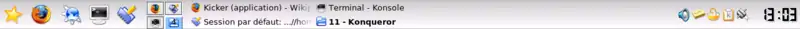 .[1][2] Consiste en un área donde aparecen en forma de botones los programas en ejecución y del mismo los accesos directos a programas, otras barras y diversas notificaciones durante la sesión de trabajo por parte del usuario.