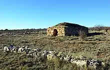 ![]() Vista fronto-lateral derecha (nororiental) de la Barraca Grande del Pinar Casas Bajas, 2018. | ||
