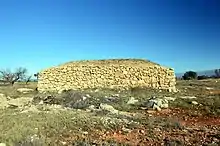 - Muros: de mampostería sin cimentación ni aglomerantes, basados en mampuestos de distintos tamaños con «ripios» que sirven para nivelar.