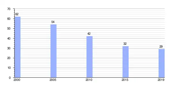 Gráfica de evolución demográfica de Barreiro entre 2000 y 2019 |