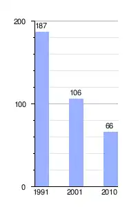 Gráfica de evolución demográfica de Barrio Canale entre 1991 y 2010 |