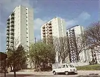 Posteriormente se comenzaron a construir las 8 torres de 14 pisos que completaron el conjunto, siendo finalizadas a fines de los años '70.
