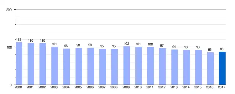Gráfica de evolución demográfica de Barrio de Nuestra Señora entre 2000 y 2017 |