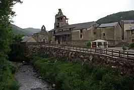 Madoz en el siglo XIX ya menciona como construcciones destacadas el puente romano de factura medieval que presta su nombre a la población, la iglesia parroquial y tres ermitas. Entre estas, la más interesante es la ermita de Nuestro Padre Jesús Nazareno, fundada por el cura Juan Rubio Bardón en 1756 y que exhibe un blasón en la fachada. La figura del Nazareno en dicha ermita es de estilo barroco yes destacable por el cuidado estudio de sus facciones y de notorio valor artístico. La iglesia, fechada en 1773, cuenta con elaboradas balconadas en su espadaña Las viviendas y edificios auxiliares pertenecen al estilo popular omañés, caracterizado por tejados pendientes, antaño con cubierta de centeno reemplazada por la losa, muros de pizarra y cuarcita y un estilo rústico y funcional.[11]