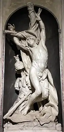 Puget, alumno en Roma de Piero da Cortona y fuertemente influido por Bernini, de paso por Génova durante un viaje a Massa para aprovisionarse de mármol, obtuvo importantes encargos del rico patriciado de la Superba que lo llevó a quedarse durante una década. En ese período completó varios proyectos y se convirtió en el titular de un fructífero taller donde se formaron numerosos escultores, como Daniello Solaro y Honoré Pellé. En 1663, Francesco Maria Sauli encargó al escultor que completara la basílica de Santa Maria Assunta de Carignano, inspirada en la obra de Bernini en San Pedro. El colosal baldaquino sobre columnas gemelas coronadas por la estatua de la Asunción, que en el diseño de Puget debería haber ocupado el centro de la basílica, nunca se realizó; a pesar de ello, las dos estatuas talladas para los nichos bajo la cúpula, el San Sebastiano y el Beato Alessandro Sauli, se mantienen entre los más altos logros del escultor. En ellas, el extremo virtuosismo en la presentación de detalles, como la ternura de la carne, el metal de la armadura o los bordados del planeta obispal, se combina con las poses de vuelta girándose.[24]