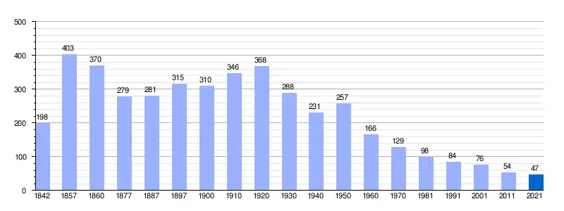 Gráfica de evolución demográfica de Barruelo del Valle[5] entre 1842 y 2021 |