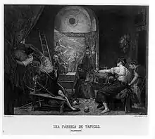 Una fábrica de tapices (Hilanderas), 1870, 450 x 450 mm, aguafuerte de Bartolomé Maura según Diego Velázquez.