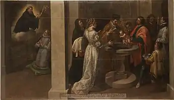 En la iglesia del citado convento de San Pablo, en una de sus capillas, Antonio Ponz pudo ver una «composición extraña, que tira al estilo de Bartolomé de Cárdenas», de la Venida del Espíritu Santo, y en otra un cuadro de igual estilo de la Anunciación, que pudiera ser la actualmente conservada en la catedral.[5] Ya Palomino le atribuyó en el mismo lugar los cuadros de su altar mayor, otro de la Última Cena en el refectorio y una Gloria de grandes dimensiones que ocupaba todo el testero del coro, estos últimos perdidos. Isidoro Bosarte describió con mayor detalle el cuadro de la Gloria, en el que vio la fecha de 1621, donde se encontraba a la Virgen con el manto extendido acogiendo a algunos dominicos, con Santo Domingo en un extremo, de tamaño «colosal», como también lo eran algunos ángeles, en «numeroso acompañamiento de gloria», y en el lado derecho, de rodillas, Lerma vestido de cardenal y de tamaño natural, lo que Bosarte reprochaba al pintor por romper el equilibrio.[6]