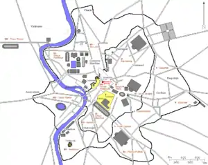 ![]() Ubicación de la basílica Porcia en un mapa de la Antigua Roma. | ||