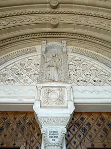 Muestra un tímpano los nombres de los distintos lugares de Europa, África y Asia recorridos por Francisco de Javier durante su vida.