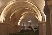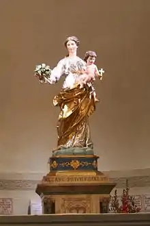 Escaramagne compró en una subasta una estatua de la Virgen y el niño del siglo XVIII que provenía de un convento religioso de Picpus, que estaba cerca del Palacio de Justicia, demolido durante la Revolución. Ofreció esta estatua a Nuestra Señora de la Guarda. El cetro que sostenía fue reemplazado por un ramo de flores; de ahí el nombre de la estatua de la «Virgen del ramo». Mientras se procuraba espacio para la nueva estatua de plata realizada en 1837, se la confió a la Cartuja de Montrieux, para volver al santuario en 1979. Esta estatua de la «Virgen del ramo» se encuentra actualmente expuesta en el altar de la cripta.[38]