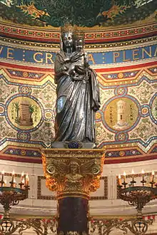 Las dos estatuas de la Virgen, la del ramo y la de plata, son pues, anteriores a la basílica en la que están expuestas, ya que la primera piedra de esta se puso en 1850.[46]