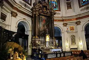El altar mayor y seis altares laterales están decorados con retablos de Theodoor van Loon. Representan siete escenas de la vida de la Virgen. En las capillas laterales se encuentran el Encuentro en la Puerta Dorada, que sirve como representación de la Inmaculada Concepción, el Nacimiento de la Virgen, la Presentación de la Virgen, la Anunciación, la Visitación y la Presentación de Jesús en el Templo . El retablo del altar mayor representa la Asunción de la Virgen. Varias otras pinturas adornan la basílica, una de las cuales es la Lamentación de Cristo de Theodoor van Loon.[8] La estatuaria es de los escultores de Nole y presenta las seis estatuas de profetas en las columnas en el espacio central de la basílica, cuatro evangelistas sentados en el vestíbulo, así como los dos arcángeles que flanquean la entrada principal.[9]