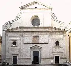 La construcción fue fundada por Guillaume d'Estouteville, arzobispo de Ruan y canciller papal. La fachada se construyó en 1483 por Giacomo di Pietrasanta, usando mármol cogido del Coliseo.