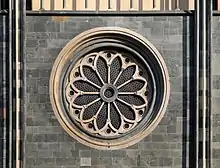 Dos delgadas pilastras a fascio enmarcan el portal central y el rosetón situado por encima. Dos órdenes de logietas, con columnas y capiteles decorados con crochet, cruzan la fachada , desde un campanile al otro, y delimitan inferiormente el tímpano, en cuya parte superior se dispone una elegante edicoletta.