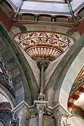 Sobre el sarcófago hay un nicho elegante que alberga un fresco de la escuela lombarda que representa l'abate Tommaso in cattedra;[11] figuras de Angeli musicanti rodean el anillo del nicho. A su autor se le llama convencionalmente Maestro della Tomba di Tommaso Gallo.