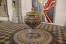 Encima de la entrada hay una capilla de San Miguel. Un monumento a los caídos fue erigido en 1963 en el vestíbulo y también está dedicado a San Miguel.