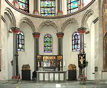 Entre 1210 y 1215 comenzó la erección del actual edificio. El coro fue terminado 1226 y la iglesia consagrada en 1247. Hasta 1261 un transepto y una torre fueron agregados al oeste.