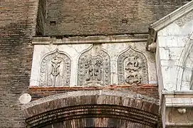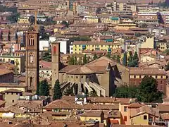 ![]() Fachada en la plaza de San Francisco (Bolonia) Fachada en la plaza homónima | ||