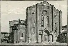 Si bien tiene una fachada enteramente en ladrillo románica del siglo XIII, así como lo son el portal y sus bajorrelieves hechos en piedra blanca, toma prestadas las formas del estilo gótico francés siendo una de las edificaciones italianas que lo reflejan con mayor fidelidad, claramente reconocible en los arbotantes absidales externos. El conjunto ha sido a veces calificado como de estilo románico-paduano. Tiene un interior también en ladrillo con tres naves con pilares octogonales en laterita y paramentos enfoscados y pintados en blanco. Un deambulatorio absidal con nueve capillas radiantes —ahora demolidas—, con bóvedas sexpartitas (es decir, divididas en seis paños, como el de la catedral de Notre-Dame de París) con nervios cruzados reforzadas por contrafuertes.
