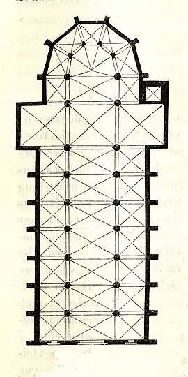 Tipo | Planta de cruz latina de tre naves y transepto, con deambulatorio | |